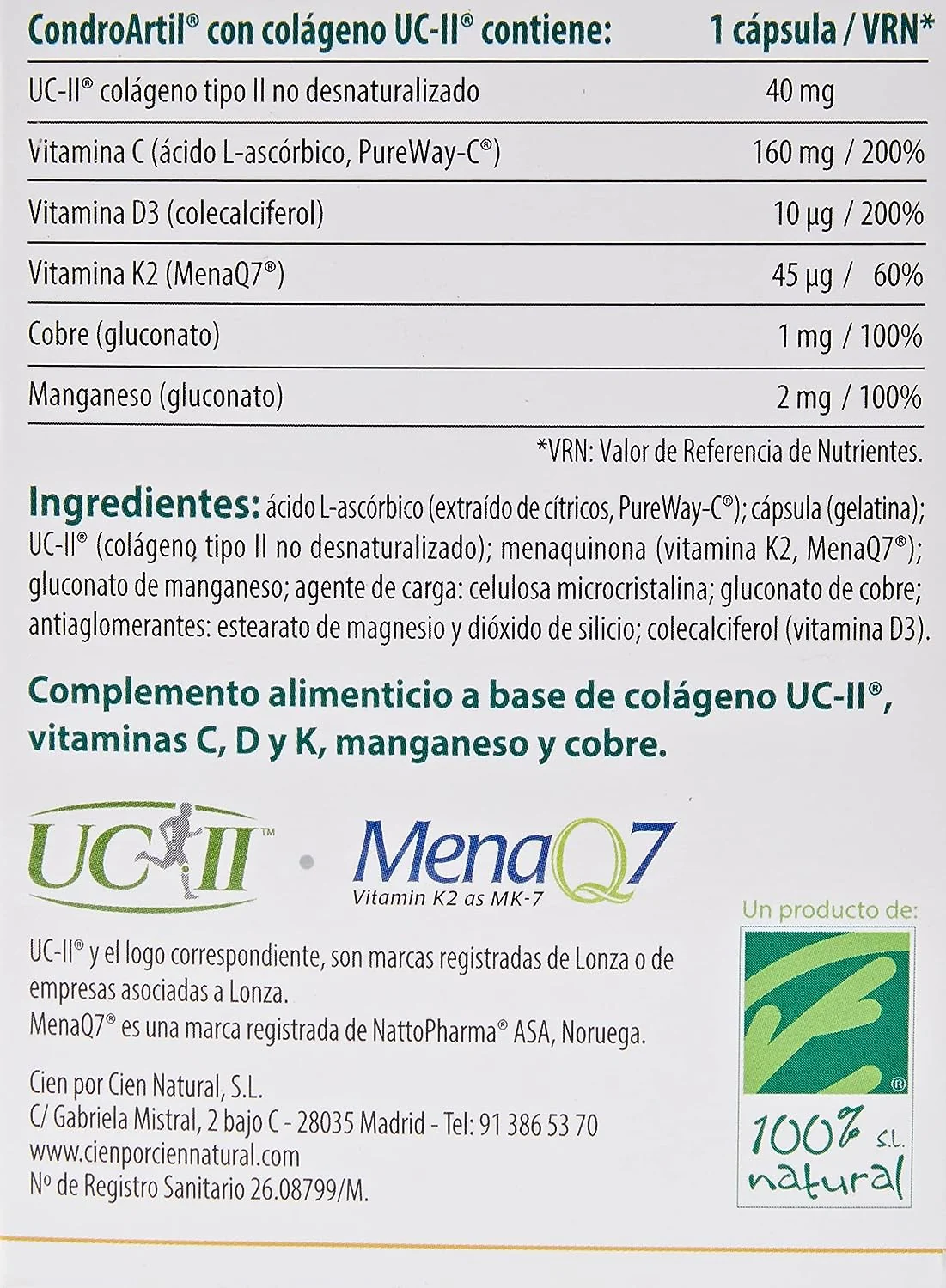 100% Natural Condroartil Con Colágeno Uc-Ii 90 Cápsulas
