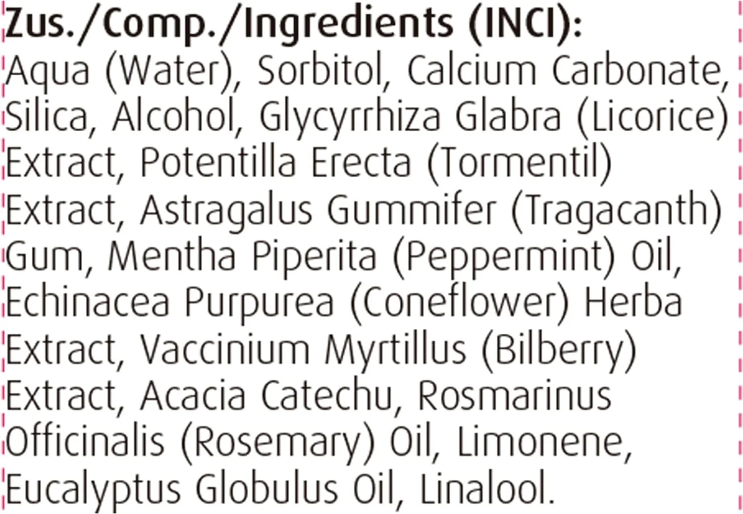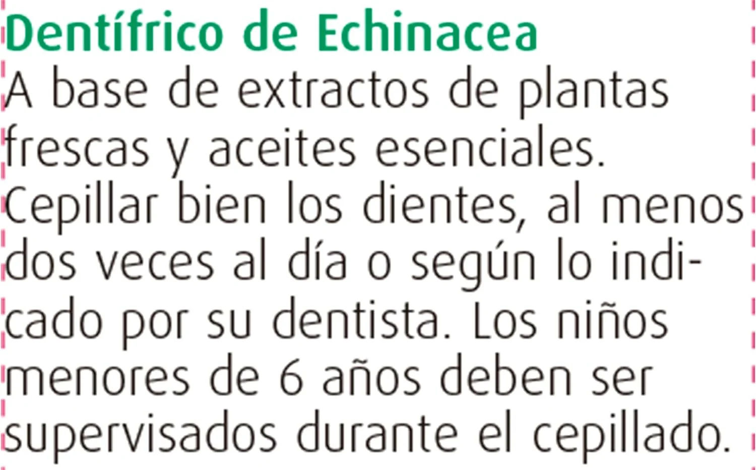 Pasta de dientes de Echinacea purpurea a base de extractos de plantas frescas y aceites esenciales.