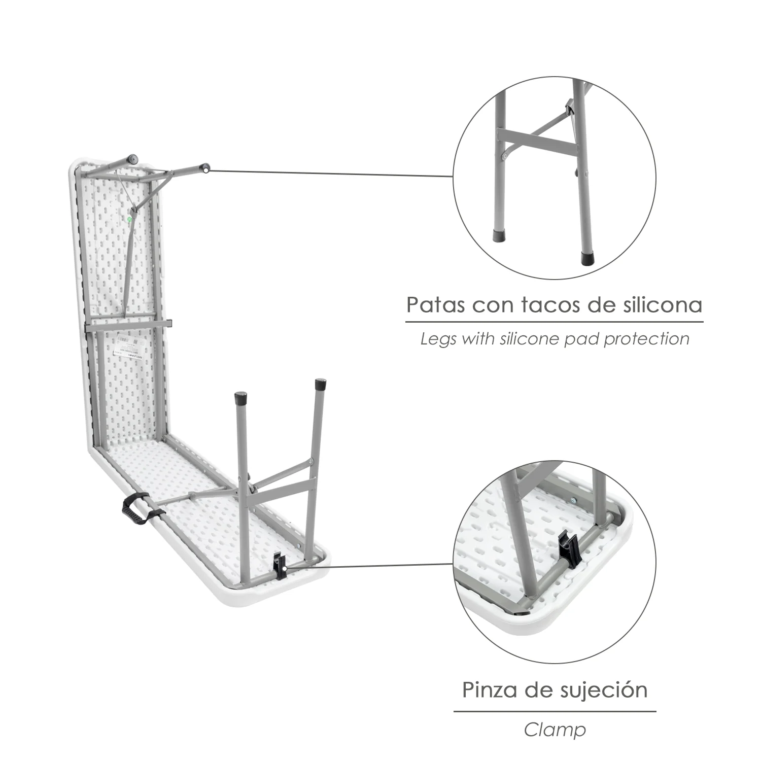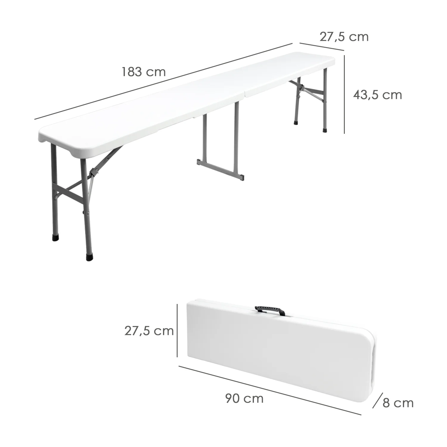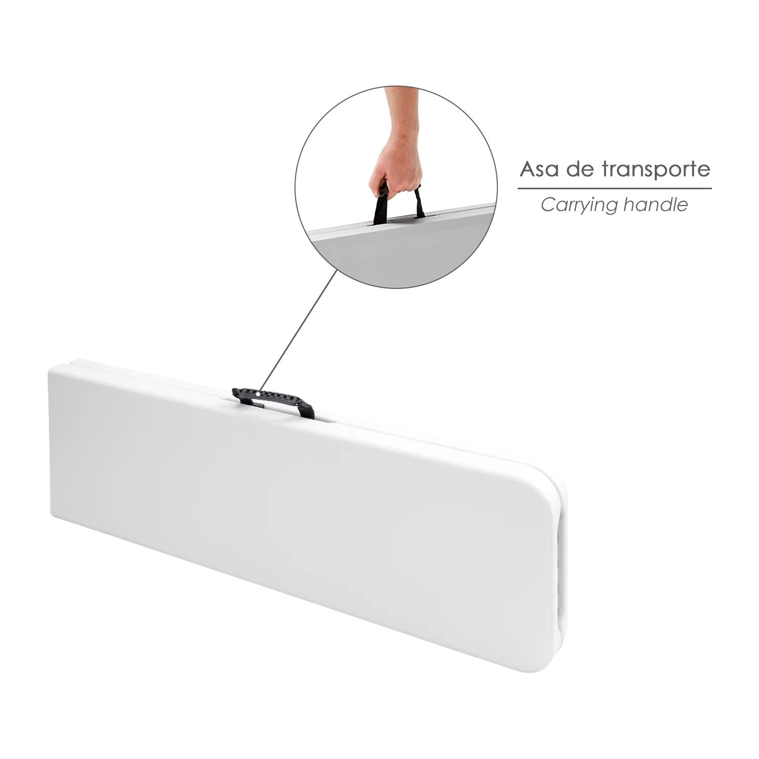 Banco Plegable Multifuncional, Portatil, Resistente,Multiusos 183x28x44 cm. Color Blanco