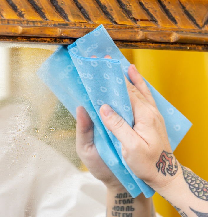 ¿Hace falta que te la presentemos? La indispensable de cualquier freak de la limpieza. Nuestra favorita (y también la tuya). Esta bayeta 100% microfibra está hecha con un innovador tejido no-hilado que evita las odiosas pelusas en la limpieza de tus cristales y espejos.