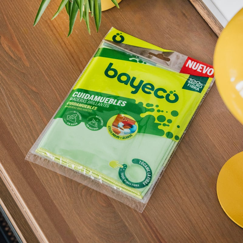 Bayeta especial para tus muebles, puertas y objetos de madera, 100% microfibra. Bayeco Cuidamuebles elimina de forma efectiva el polvo, ácaros y suciedad.