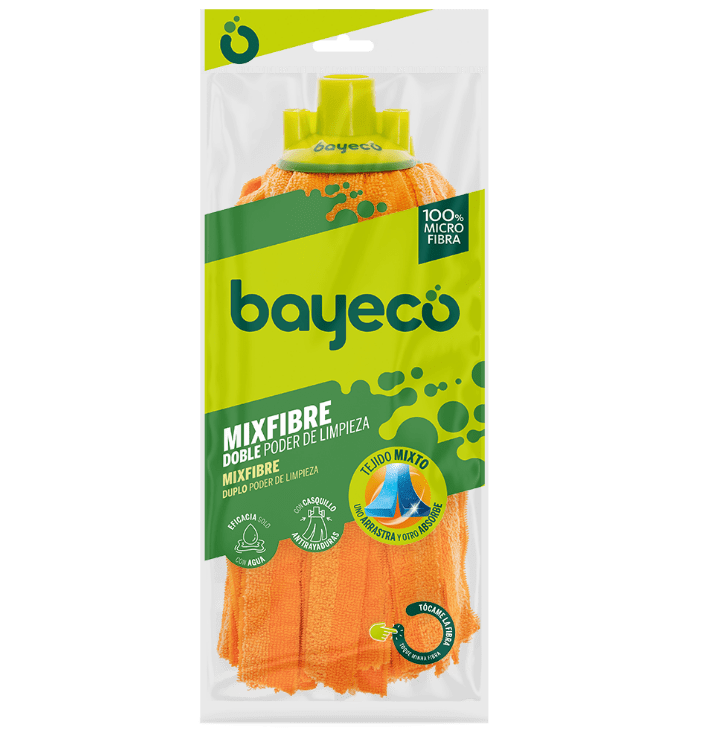 ¡La Bayeco Mixfibre es una pasada! Esta fregona de tiras 100% microfibra cuenta con un tejido mixto que aporta doble poder de limpieza: la tira más oscura arrastra mejor la suciedad, mientras que la clara facilita una mayor absorción. Además dispone con un casquillo anti-roces para proteger las superficies más delicadas.