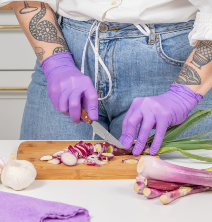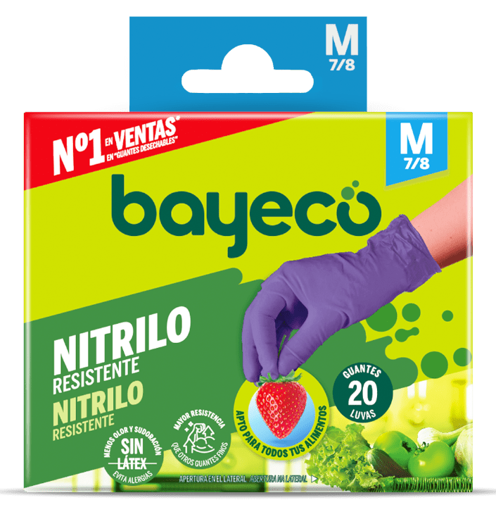 ¡El Bayeco Nitrilo 20 Morado es una pasada! Estos guantes de un solo uso de nitrilo son perfectos para el contacto con todos tus alimentos. Pela frutas y verduras, corta carne, limpia pescado… pero olvídate de las uñas sucias o malos olores en tus manos. El desechable/multiusos que no puede faltar en la cocina de todo freak de la limpieza.