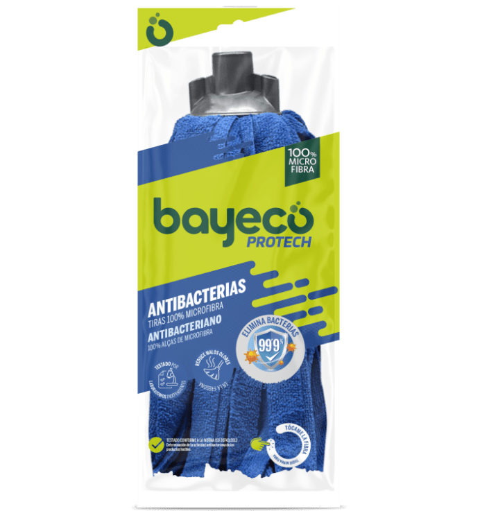 ¡La Bayeco Protech es una pasada contra las bacterias! Esta fregona de tiras 100% microfibra cuenta con una innovadora tecnología que elimina el 99,9% de bacterias que se adhieren a la fregona, limitando los malos olores que provocan… ¡Y todo sin productos químicos!