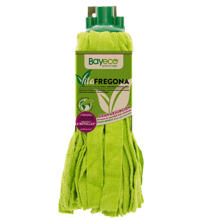 ¡La Bayeco Vitafregona es una pasada! Fabricada con plástico reciclado que equivalen a 8 botellas Pet. La gran calidad de sus tiras 100% microfibra facilitarán una gran absorción, dejando tus suelos relucientes.
