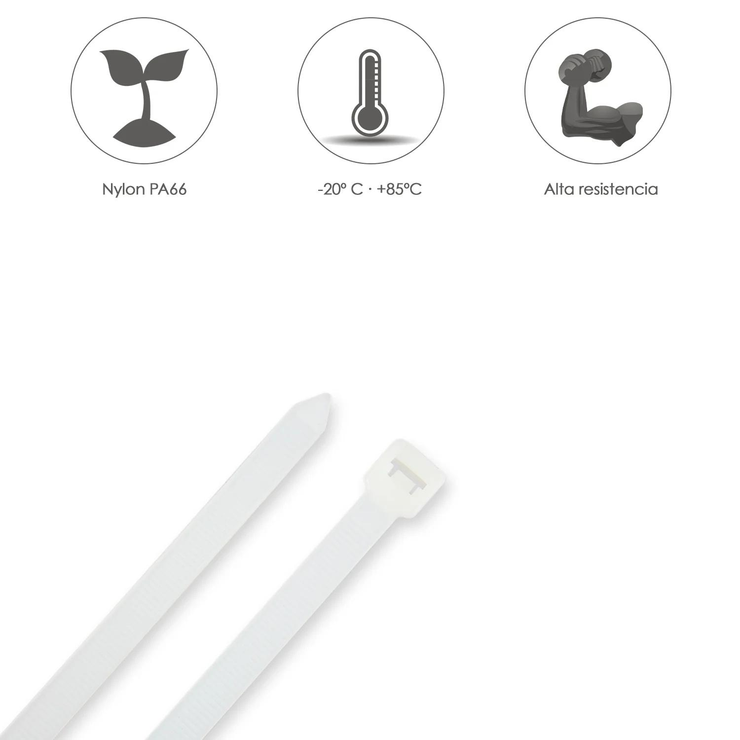 Brida Nylon 100%. Color Blanco / Natural 3,5 x 280 mm. 100 Piezas. Abrazadera Plastico, Organizador Cables, Alta Resistencia