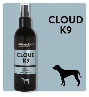 Cloud K9 de Animology, es un mist corporal con fragancia vivaz y masculina para perros con notas duraderas de bergamota y musgo de roble.