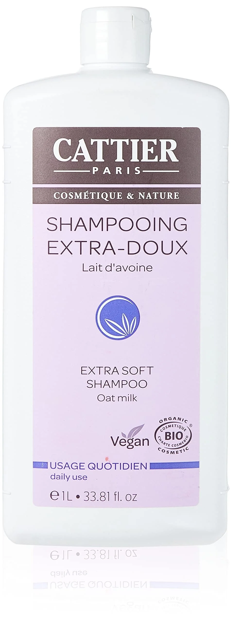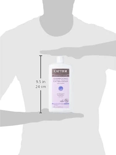 Champú Extra Suave Cattier, rico en leche de avena, fortalece y aporta brillo al cabello.