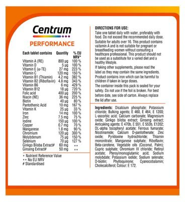 Centrum Performance Multivitaminas y Minerales 30 Comprimidos