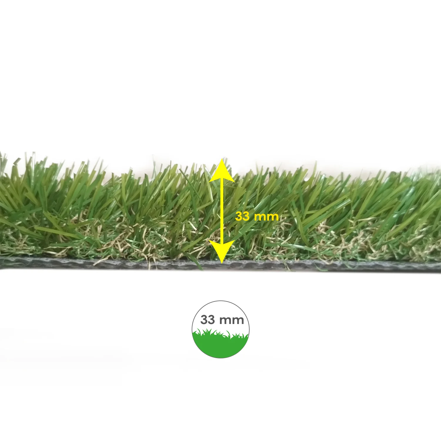 Cesped Artificial 33 mm. Rollo 2×10 metros. Césped Moqueta Para Interior y Exterior. Jardín, Terraza, Balcón. Uso Domestico