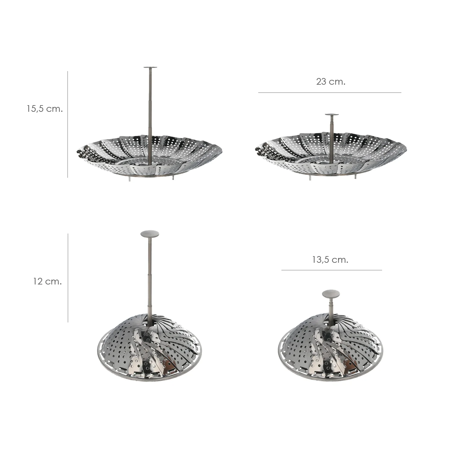 Cesta Vaporera Acero Inoxidable, Plegable Ø 13,5 / 23 cm. Cocina Al Vapor.