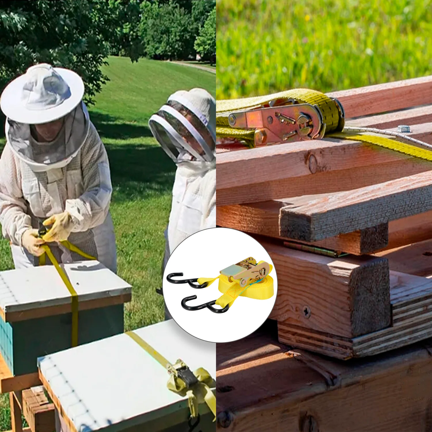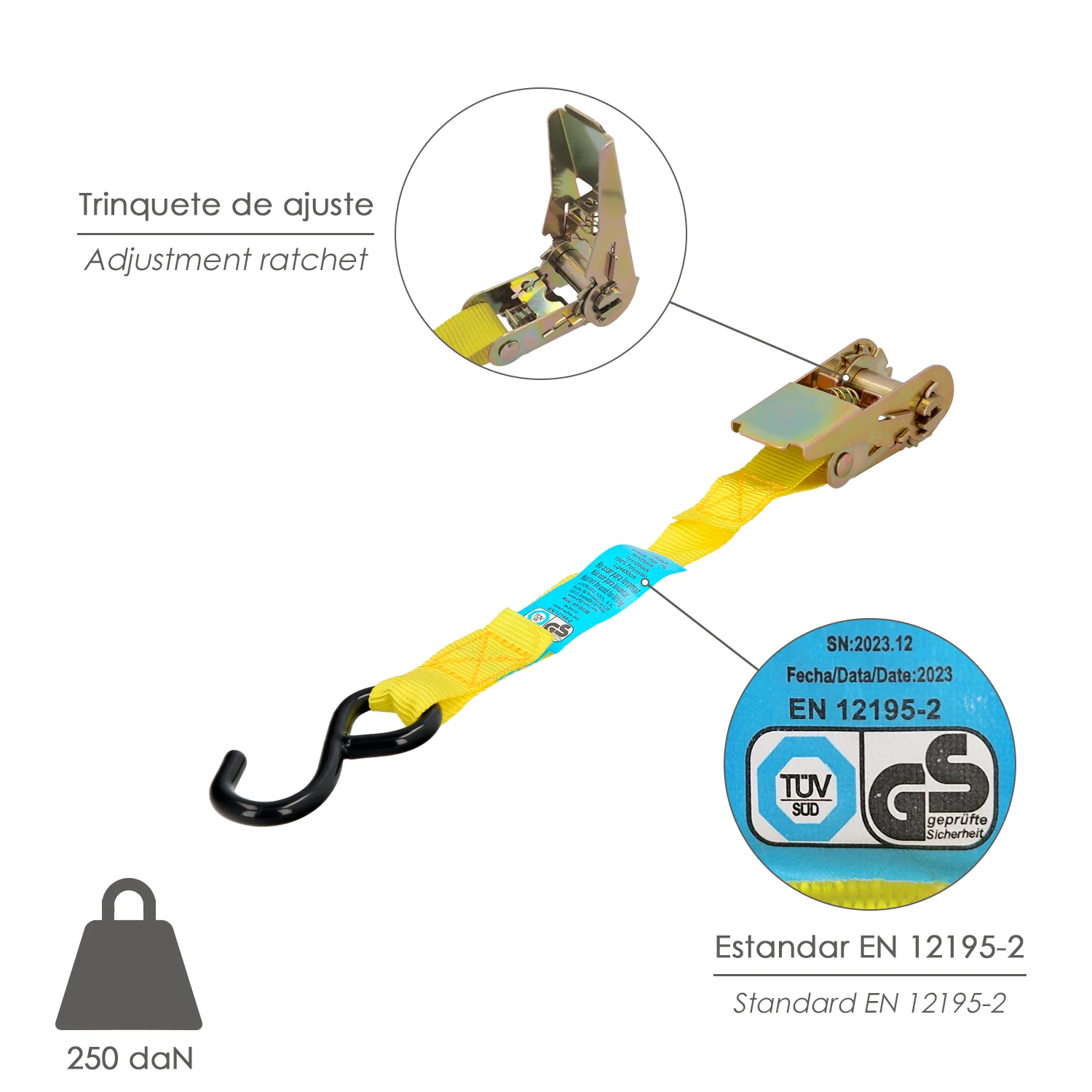 Cinta De Amarre Con Ratchet 4 metros x 25 mm. Trinquete Metalico Automatico, Cincha, Eslinga Mercancia, Correa Sujeción (Pack 2)