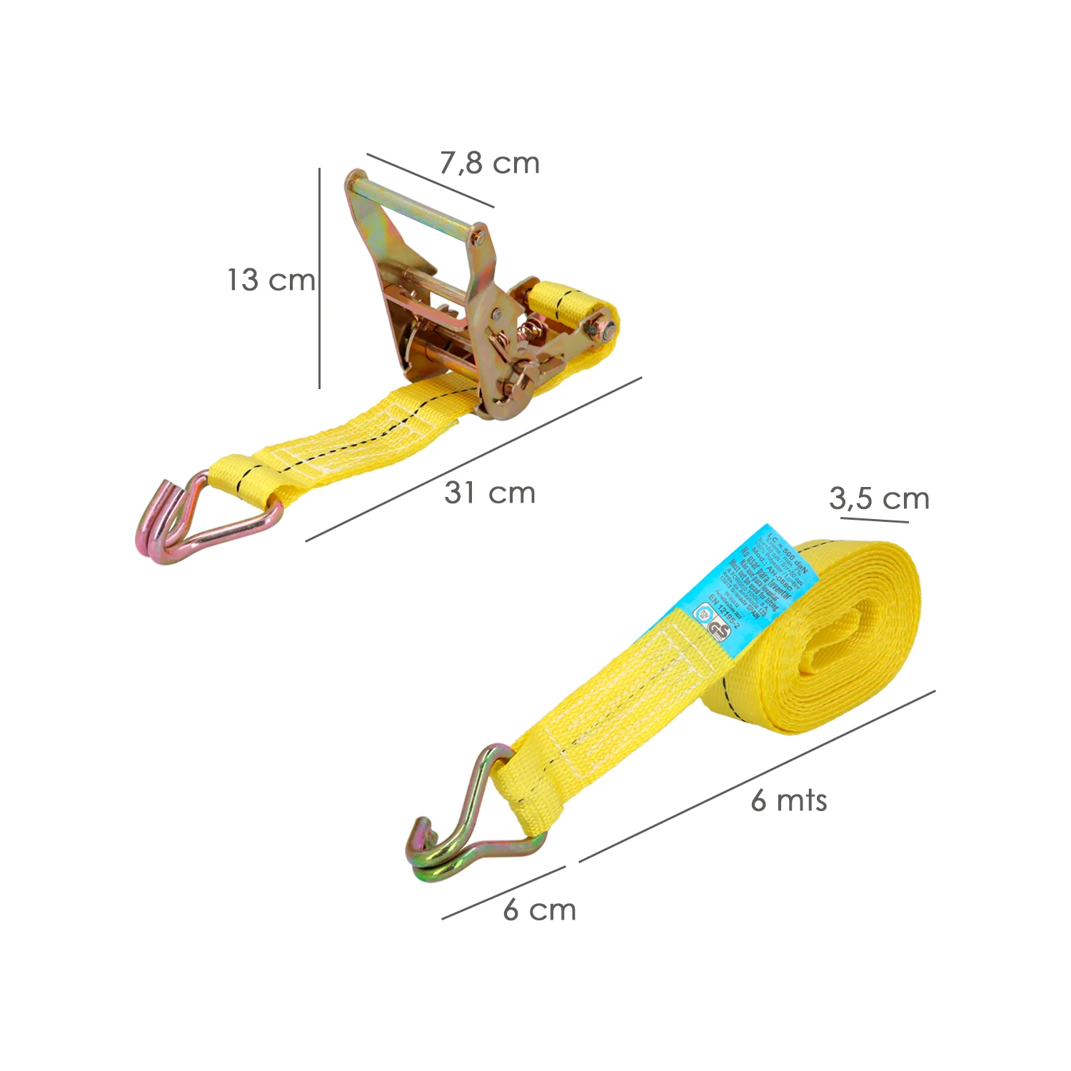 Cinta De Amarre Con Ratchet 6 metros x 38 mm. Trinquete Metalico Automatico, Cincha, Eslinga Mercancia, Correa Sujeción
