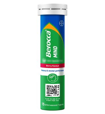 Berocca Mind contiene nutrientes para apoyar su memoria, rendimiento mental y función cognitiva.