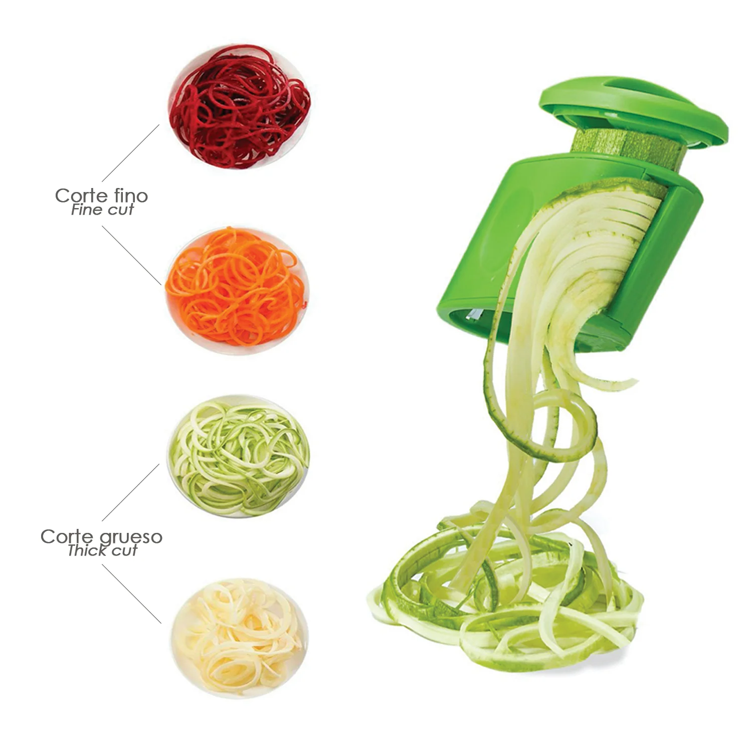 - Cortador de verduras con doble cuchilla, para corte fino o grueso, en forma de espiral
