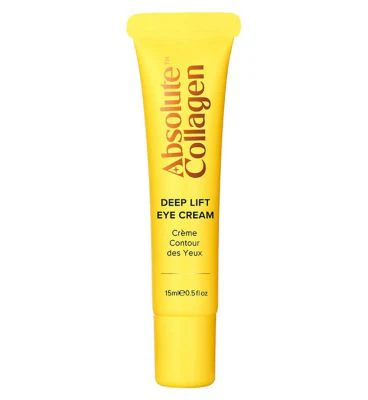 Absolute Collagen Deep Lift Eye Cream reduce la apariencia de ojeras, hinchazón y líneas finas para lograr una mirada más brillante.