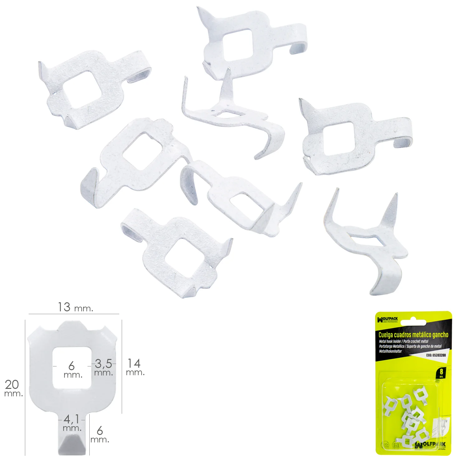 Cuelga Cuadros Metalico Gancho Blister 8 Piezas