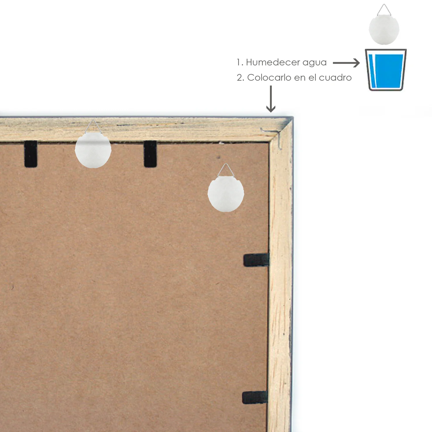 - Para fijarlo al cuadro hay que humedecer la tela por la parte adhesiva en agua