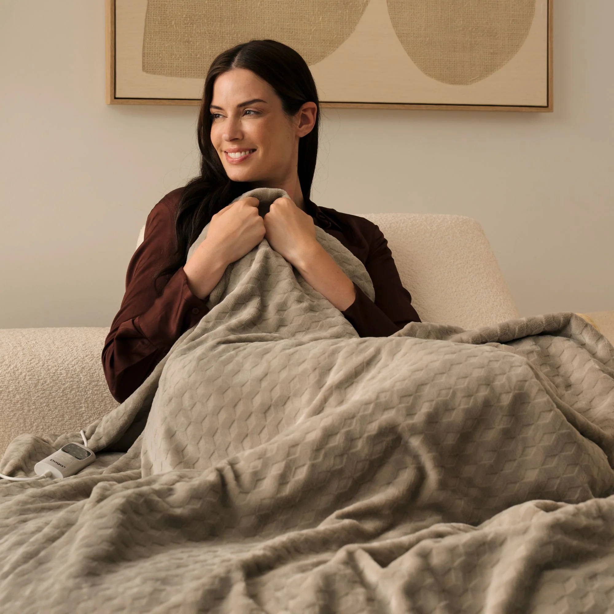 Haz únicos tus momentos de relajación o trabajo con la manta térmica Relax Suave XL Calma. Tejido ultrasuave acolchado de terciopelo con diseño de nido. Perfecta para noches de relax, en casa o al aire libre, te brinda un abrazo de confort y calor. Tecnología innovadora Intellisense® que ajusta la temperatura a la de tu cuerpo y del entorno.Fácil de usar, con rápido calentamiento y bajo consumo. 6 temperaturas, multi-temporizador y máxima seguridad.