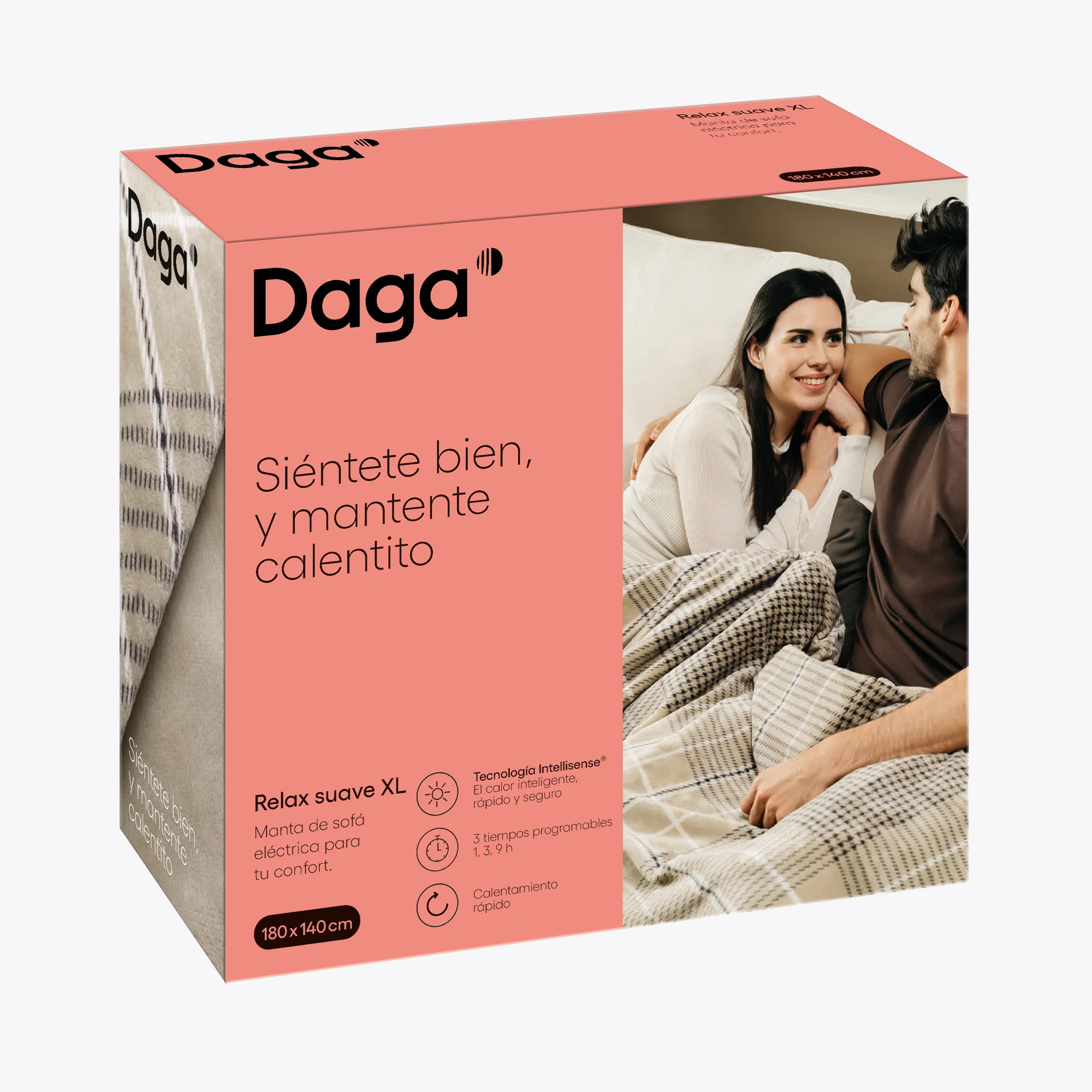 Daga Relax Suave XL es todo lo que necesitáis en las frías y largas tardes de invierno, esas en las que solo apetece estar en el sofá viendo la tele o en la cama. Poneos cómodos y relajáos, es vuestro momento. Y su ventaja principal: ¡es tan grande que no os pelearéis por quién tiene más manta! La tecnología Intellisense® os lo hará más fácil aún, ya que se adapta a vuestra temperatura corporal, a la del entorno y a vuestras necesidades. 6 temperaturas, multitemporizador y máxima seguridad.