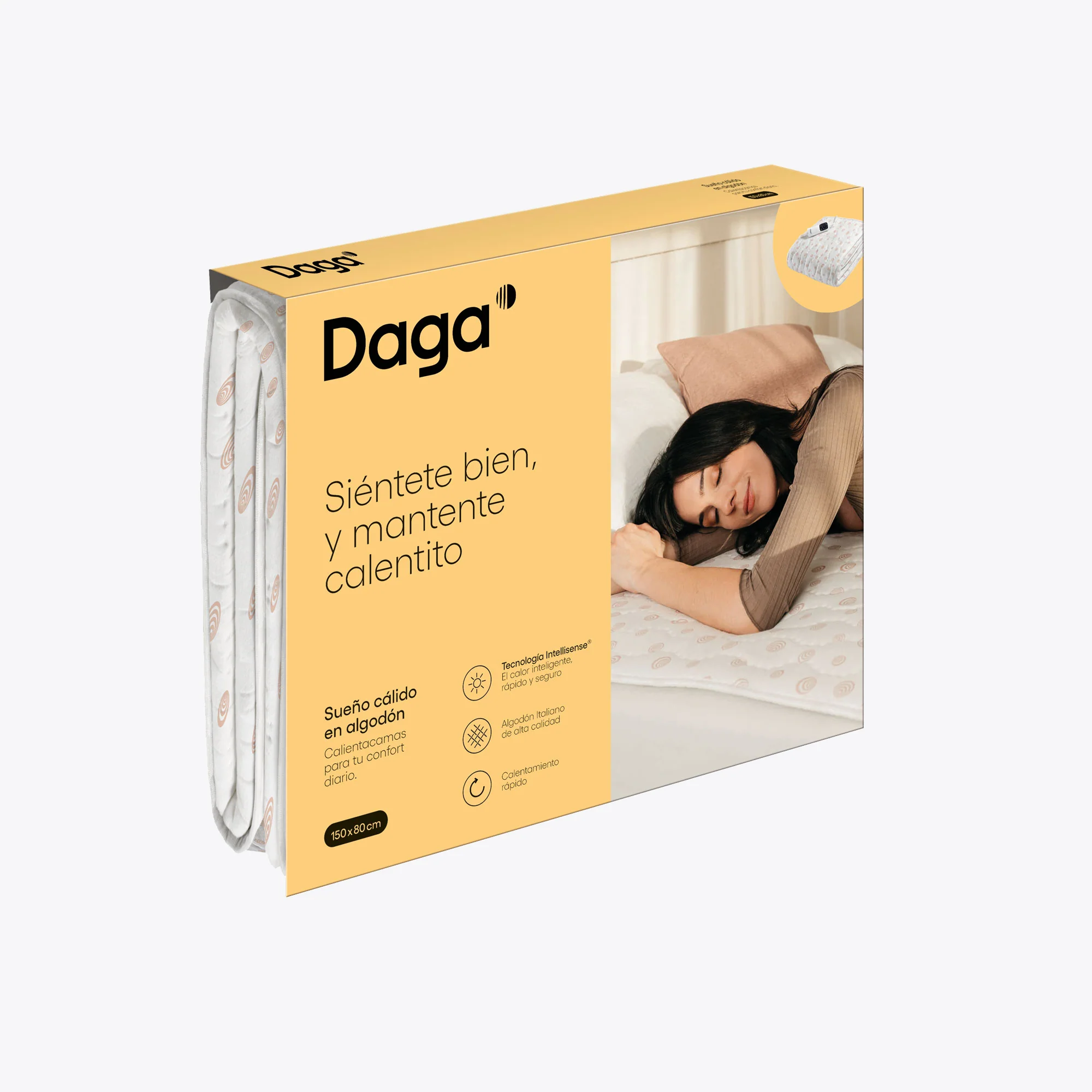 Daga Sueño Cálido en Algodón es el mejor compañero de cama. Con la tecnología Intellisense®, se adapta constantemente a la temperatura de tu cuerpo. Y gracias a su tejido suave de algodón, asegura tu descanso y tus cálidos sueños. Con el calientacamas Daga siempre duerme caliente y consume muy poco. Qué ganas de dormir con él, ¿verdad?
