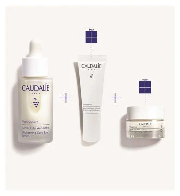 Consigue una piel radiante con esta Edición Iluminadora Vinoperfect, una rutina de cuidado facial en tres pasos para quienes buscan una tez luminosa, uniforme y sin pigmentación. Incluye el icónico Sérum Iluminador Vinoperfect de Caudalie, clínicamente probado para reducir las manchas oscuras y la decoloración gracias a su ingrediente estrella, la Viniferina™, que es 62 veces más eficaz que la Vitamina C* para iluminar la tez.