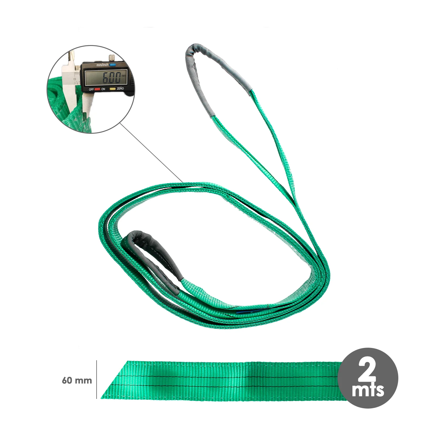 Eslinga Plana Doble Banda 2.000 Kg. Factor Seguridad 7:1, Longitud: 2 Metros Ancho 6 cm. 100% Poliester. Color Verde