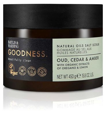 Exfoliante de sal natural Baylis Harding Goodness Oud Cedar Amber 450 g