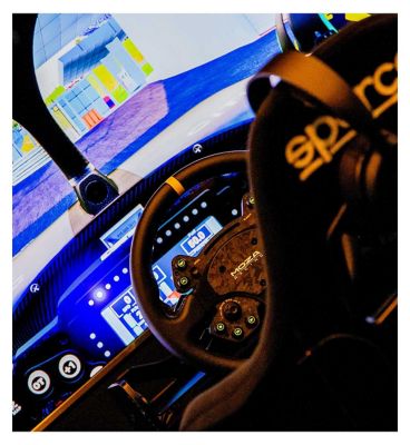 Experimente la precisión del sistema de retroalimentación de fuerza háptica en el volante y la reacción de los pedales de deportes electrónicos de primer nivel, todo mejorado por pantallas de alta definición que lo transportan a circuitos de carreras internacionales de renombre.