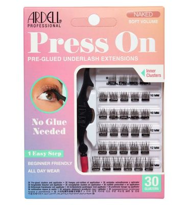 Lashes just got a whole lot easier… ARDELL’s Press On clusters are pre-glued with DUO adhesive, eliminating the glueing step and making the application process easier than ever! With 3 different lengths (10mm, 12mm and 14mm), these pre-glued ARDELL Naked lash extensions, in the style Soft Volume, are perfect for creating a soft glam look that is customised to suit your eye shape.