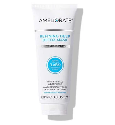 AMELIORATE Refining Deep Detox Mask targets the causes of blemishes and blocked pores with an intensive cleansing formula that carefully purifies, exfoliates and refines to improve the appearance of problem areas.