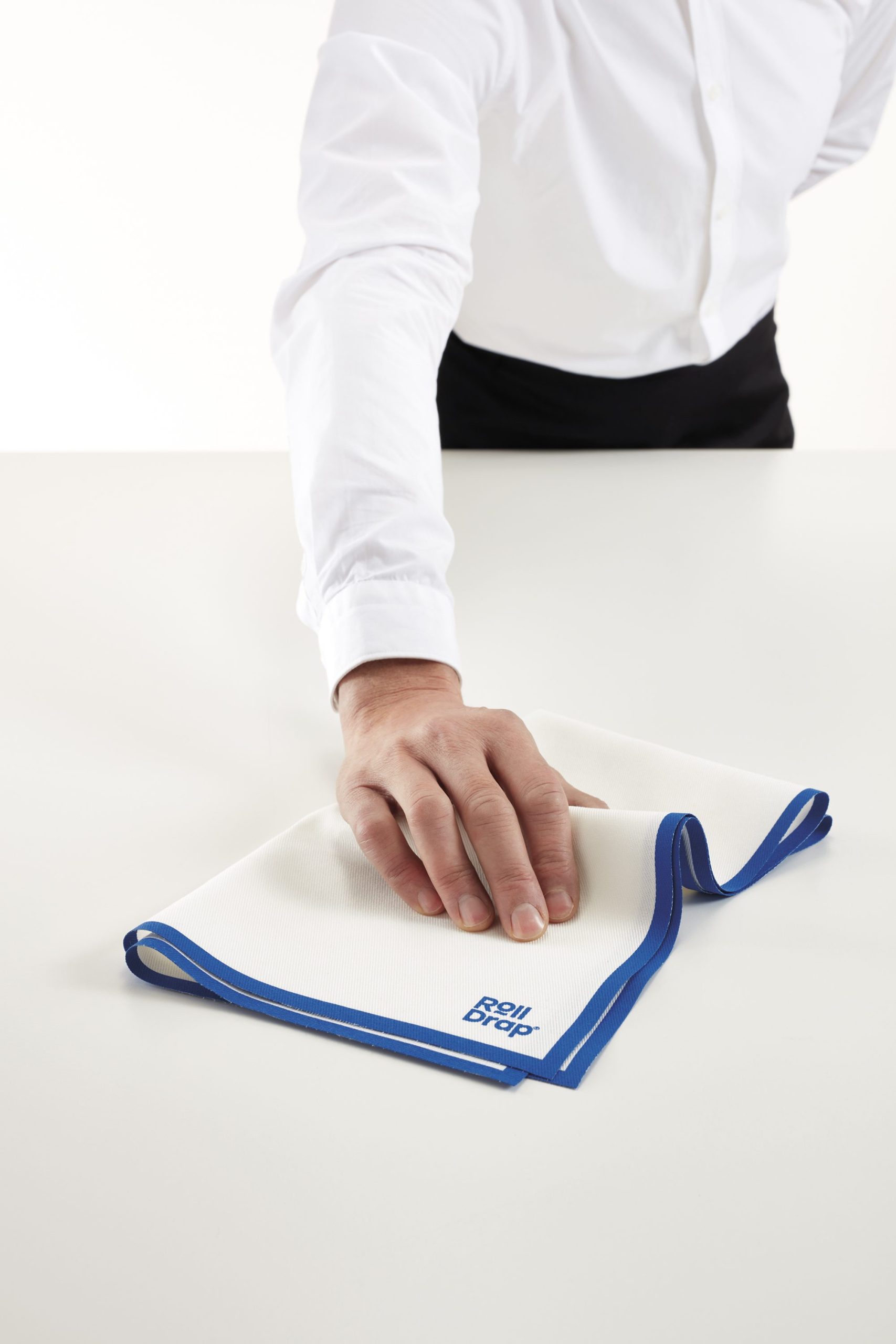 Los paños de cocina ROLL DRAP multiusos son la mejor opción para repasar y abrillantar cristalería, vajillas y cubiertos. Estos paños de cocina color blanco con cenefa Azul están fabricados íntegramente con fibras naturales y con acabados técnicos e innovadores, ofreciendo así una solución textil sostenible y profesional apta para cualquier espacio de limpieza en su día a día.