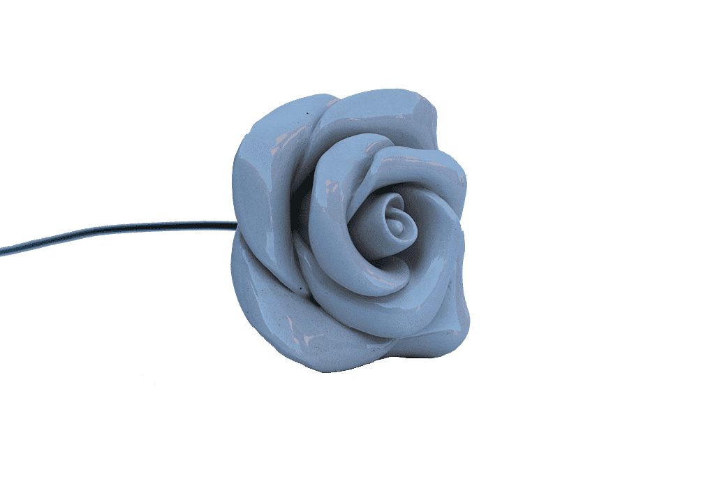 La Rosa de barro es una pieza de cerámica decorativa que imita a una rosa auténtica. De momento solo está disponible en esmalte blanco.