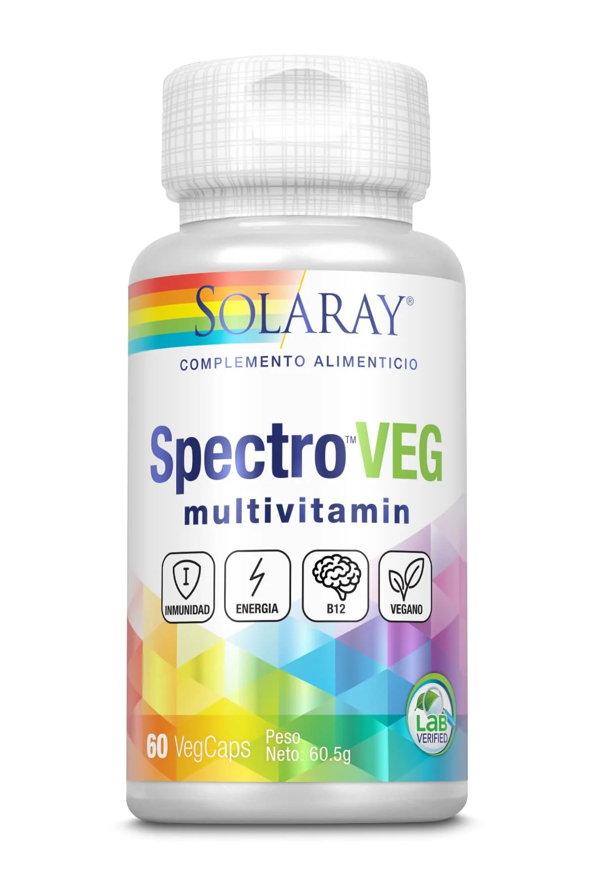 Solaray Spectro Multi Vitaminas Y Minerales 60 Vcaps, complemento alimenticio que contiene más de 30 vitaminas y minerales.