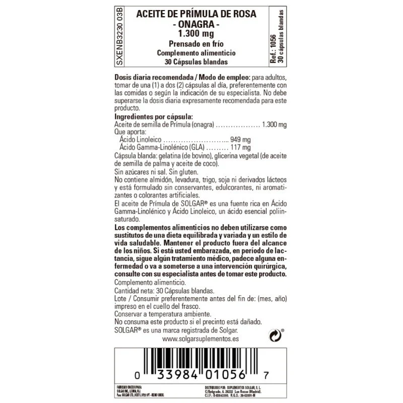 Sé el primero en valorar “SOLGAR Aceite de Prímula de Rosa 1300mg (30 Cápsulas Blandas)”