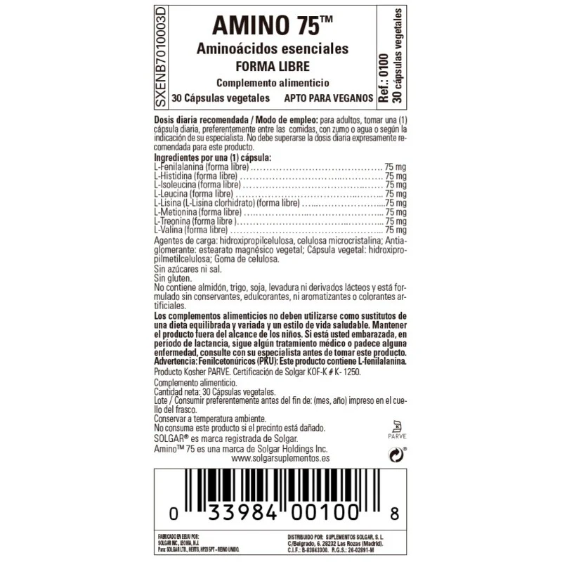 Sé el primero en valorar “SOLGAR Amino 75 (30 Cápsulas Vegetales)”