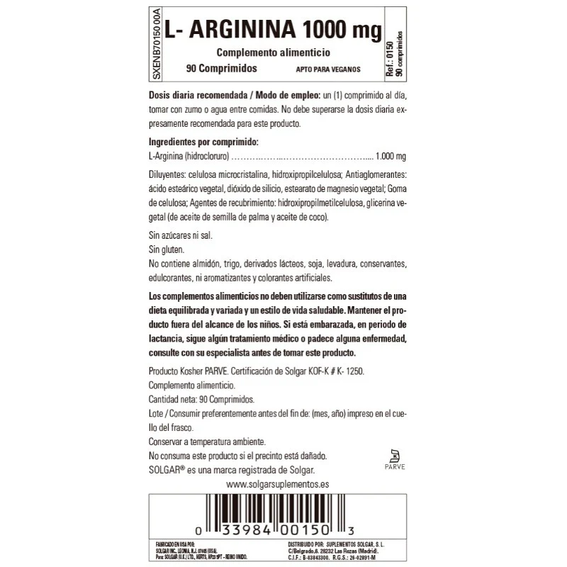 SOLGAR L-Arginina 1000mg (90 Comprimidos)