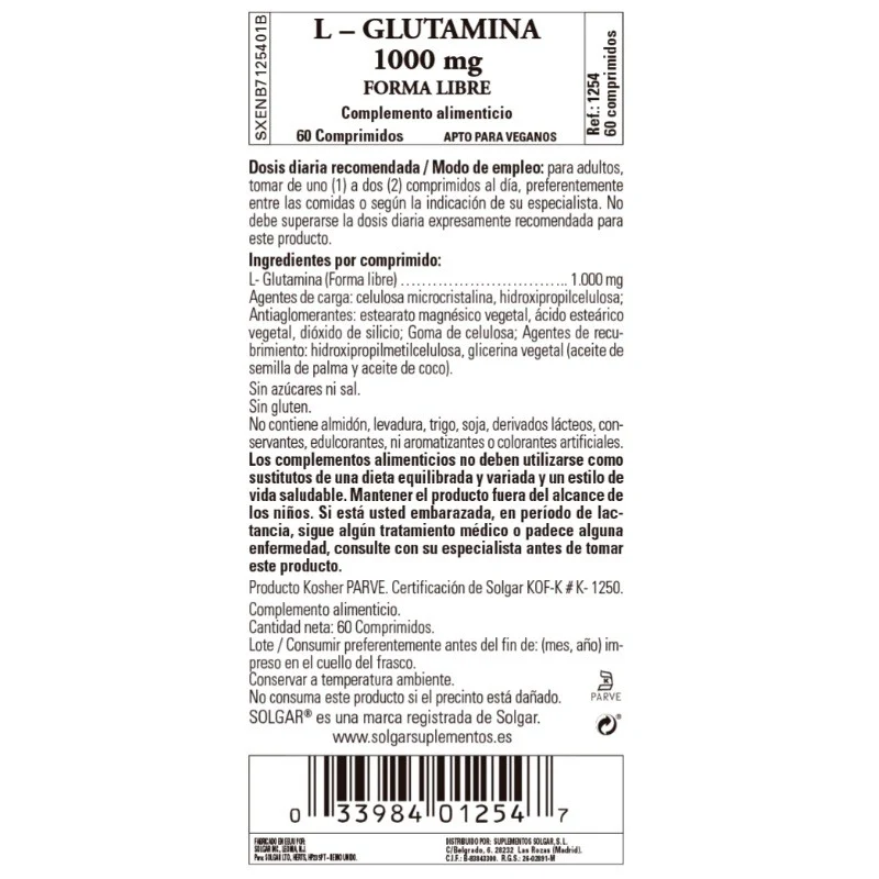 SOLGAR L-Glutamina 1000mg (60 Comprimidos)