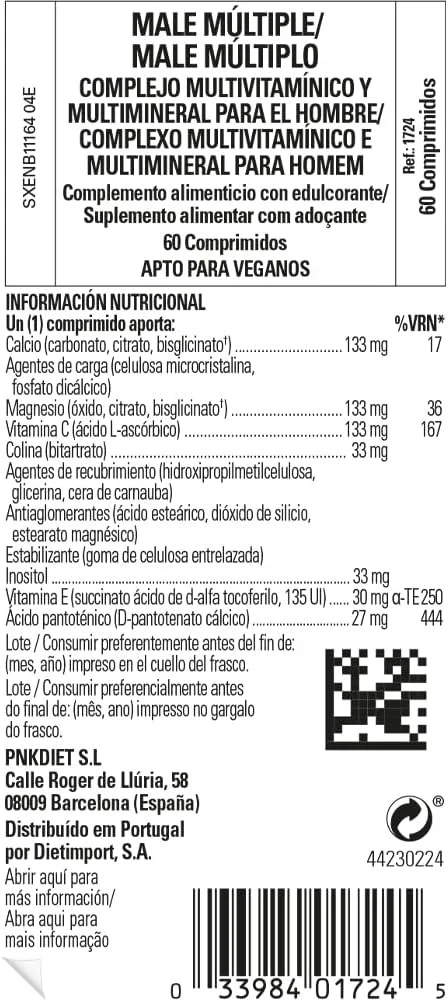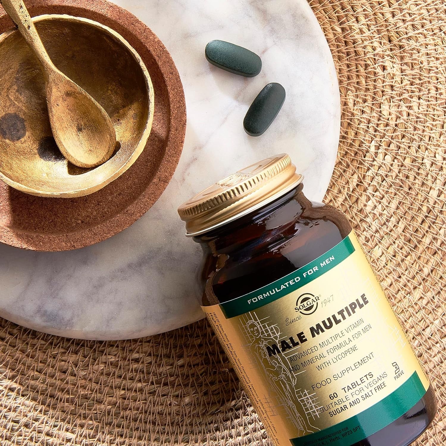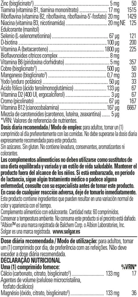 Solgar Male Multiple 60 Comp, Complejo multivitamínico y multimineral para hombres. Sin azúcares ni gluten. Apto para veganos.