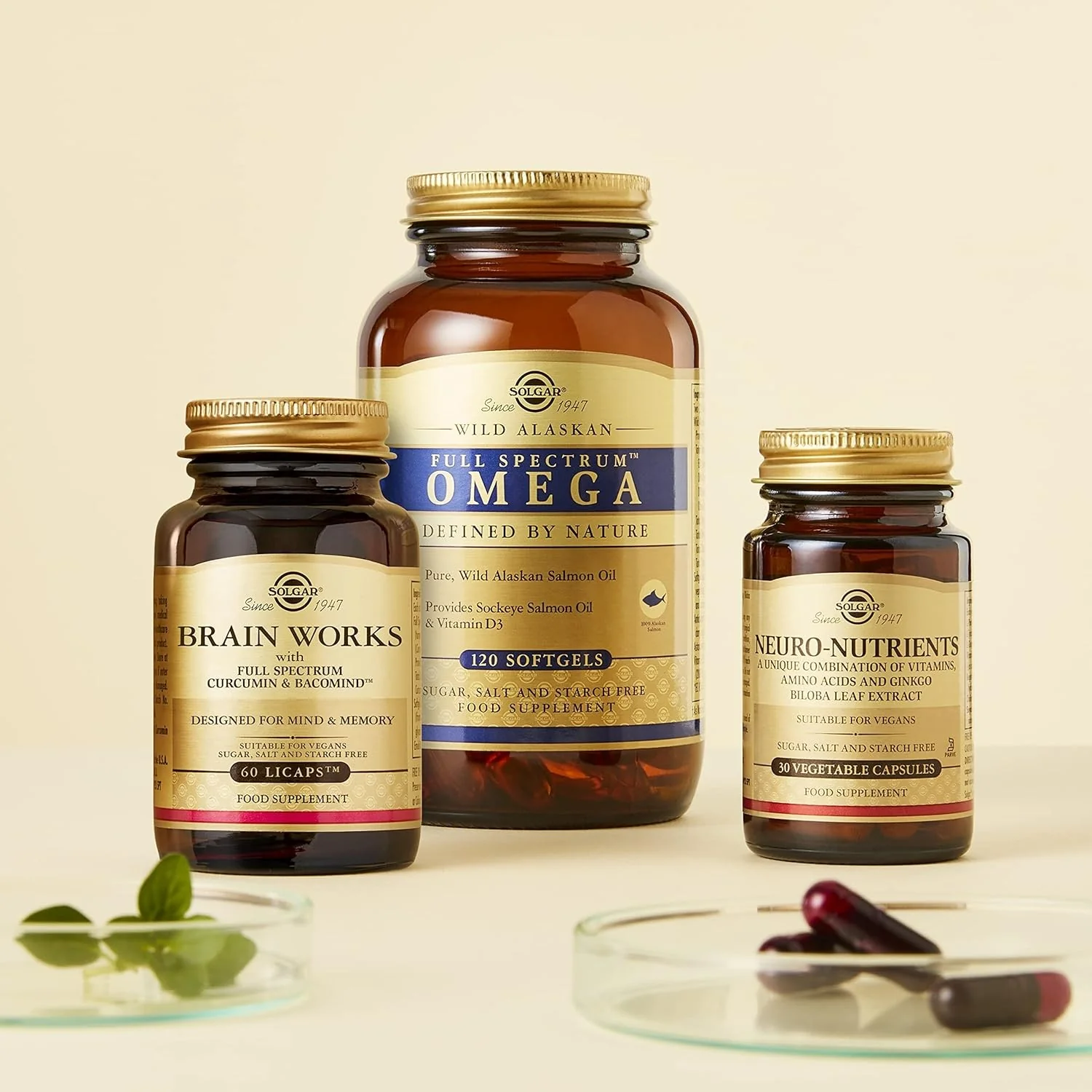 Solgar Neuro Nutrientes es una combinación exclusiva de vitaminas, aminoácidos y extracto de hoja de ginkgo biloba para el cuidado psicológico y del sistema nervioso. Contribuye a la función psicológica normal y al funcionamiento normal del sistema nervioso.