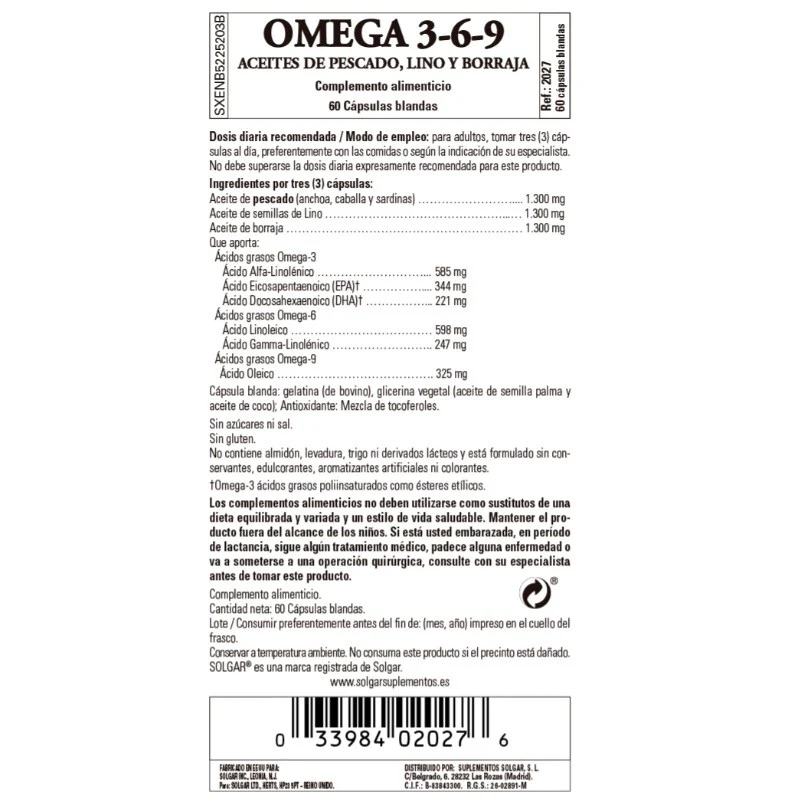 - Complemento Alimenticio con Ácidos Grasos Esenciales Omega 3-6-9.