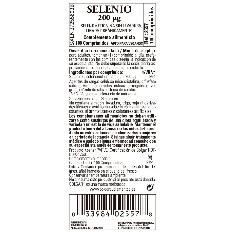 SOLGAR Selenio 200mcg (Sin Levadura) 100 comprimidos