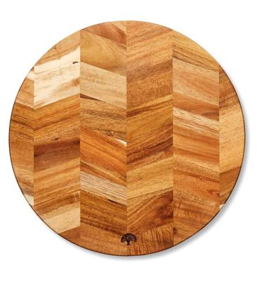 Tabla de cortar redonda de acacia y roble de Berbería Chevron