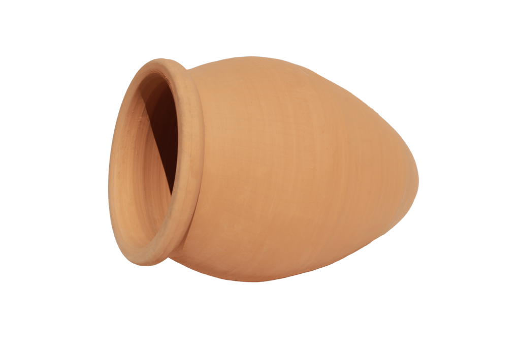 La Tinaja de pico es una pieza de cerámica tradicional conocida en todo el mundo. Es un recipiente de barro con forma de vasija, de perfil ovalado y, como su propio nombre indica, acabada en punta. Puede ser colocada de forma horizontal en el suelo o vertical usando soportes. La industria tinajera Mediterránea puede rastrearse desde la lejana Edad del Bronce, dando lugar a piezas de morfología variada. Esta en concreto acaba en pico, lo que le daba ventajas a la hora de almacenarlas puesto que ocupan menos espacio. Además, con el apogeo del comercio naval aumentaron su producción ya que, al ser transportadas en las bodegas de los barcos, se las colocaba en soportes. Esto les daba más estabilidad frente a los movimientos ocasionados por la marea, evitando que el contenido de estas tinajas antiguas se saliese. Fieles seguidores de esta tradición, desde Alfareros de Juana Trigo os ofrecemos una tinaja de pico típica, sin innovar en su forma, puesto que su presencia y elegancia son, simplemente, perfectas.