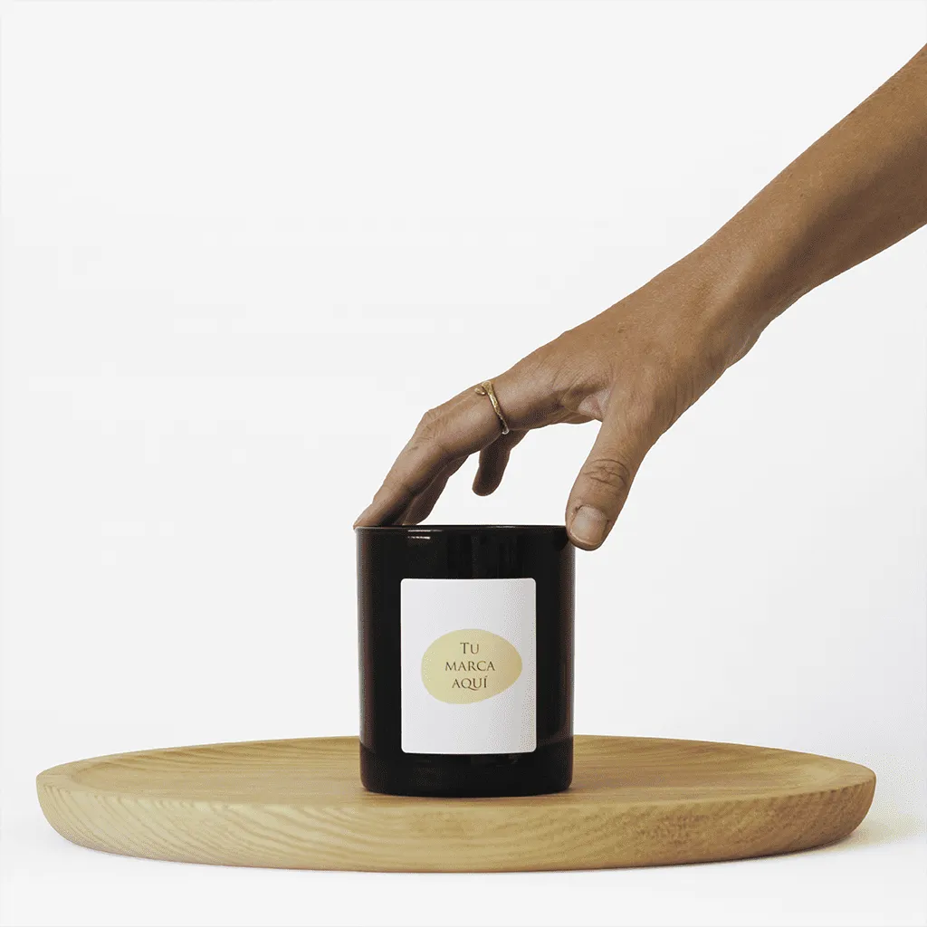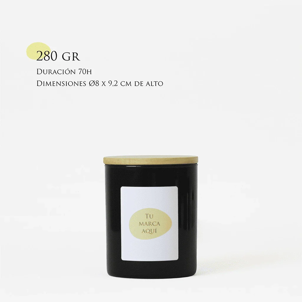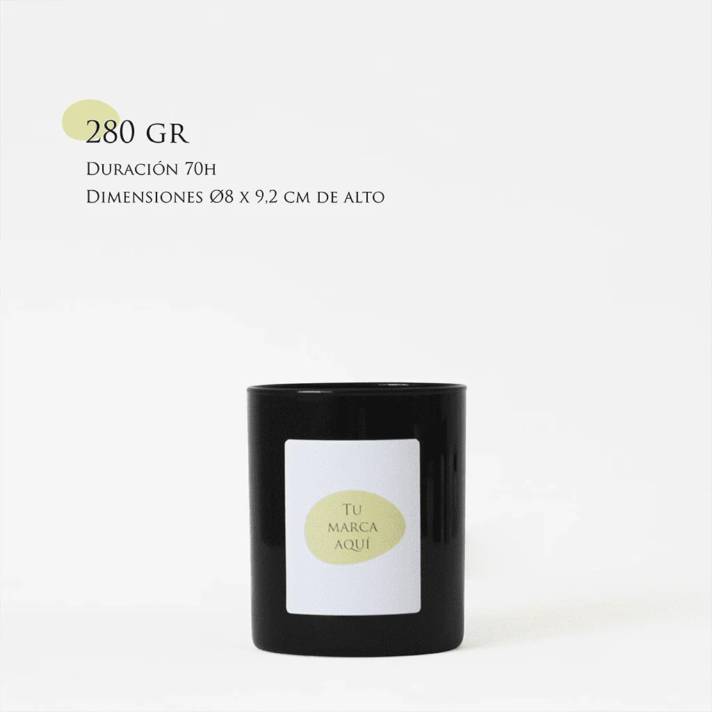Vela personalizada | Tamaño L 280g | Vaso de cristal negro + etiqueta logo/diseño