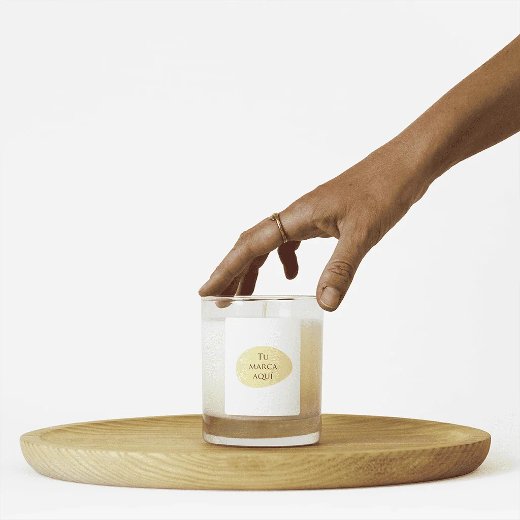 Vela 100% de cera de soja natural con una mecha de algodón trenzado encerado en la propia cera de soja. Esta vela es de 280g dura unas 70h. aprox. y el vaso mide 9,2 cm de alto x 8 cm de diámetro. El vaso va tintado en blanco brillo y lleva el logo del cliente …