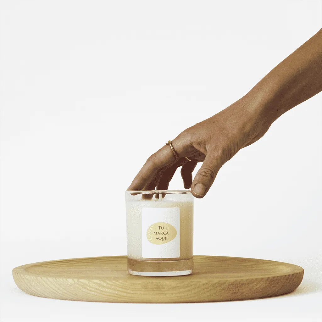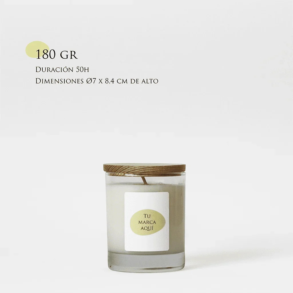 Vela personalizada | Tamaño M 180g | Vaso de cristal transparente + etiqueta logo/diseño