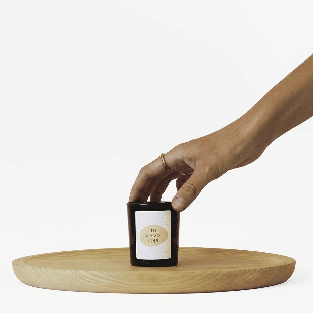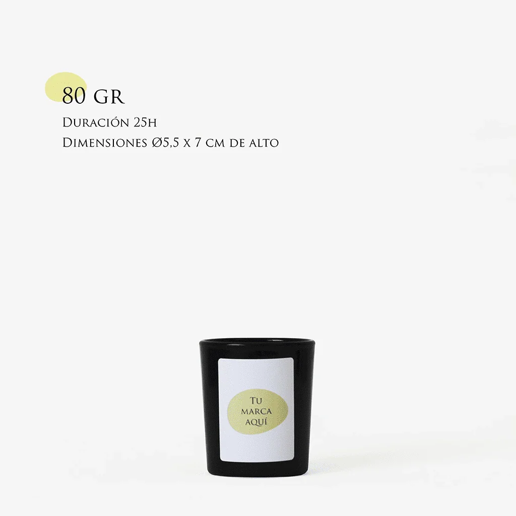 Vela personalizada | Tamaño S 80g | Vaso de cristal negro + etiqueta logo/diseño
