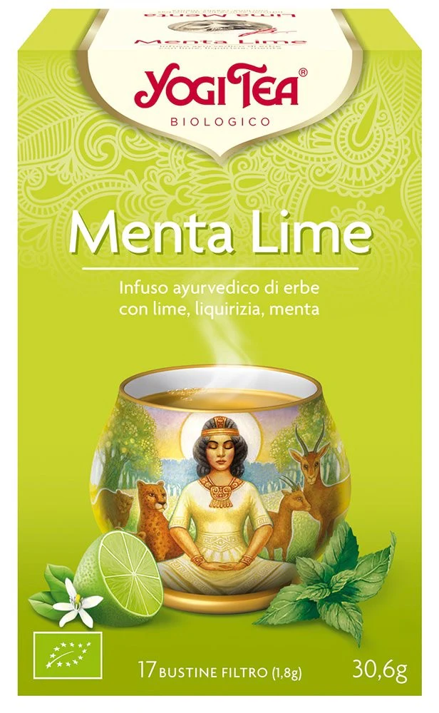 Yogi Tea Menta y Lima: Deliciosa mezcla ayurvédica de hierbas y especias que estimula la vitalidad y la alegría de vivir. Contiene regaliz, lima, cardamomo, menta piperita, hierbabuena, entre otros ingredientes beneficiosos.
